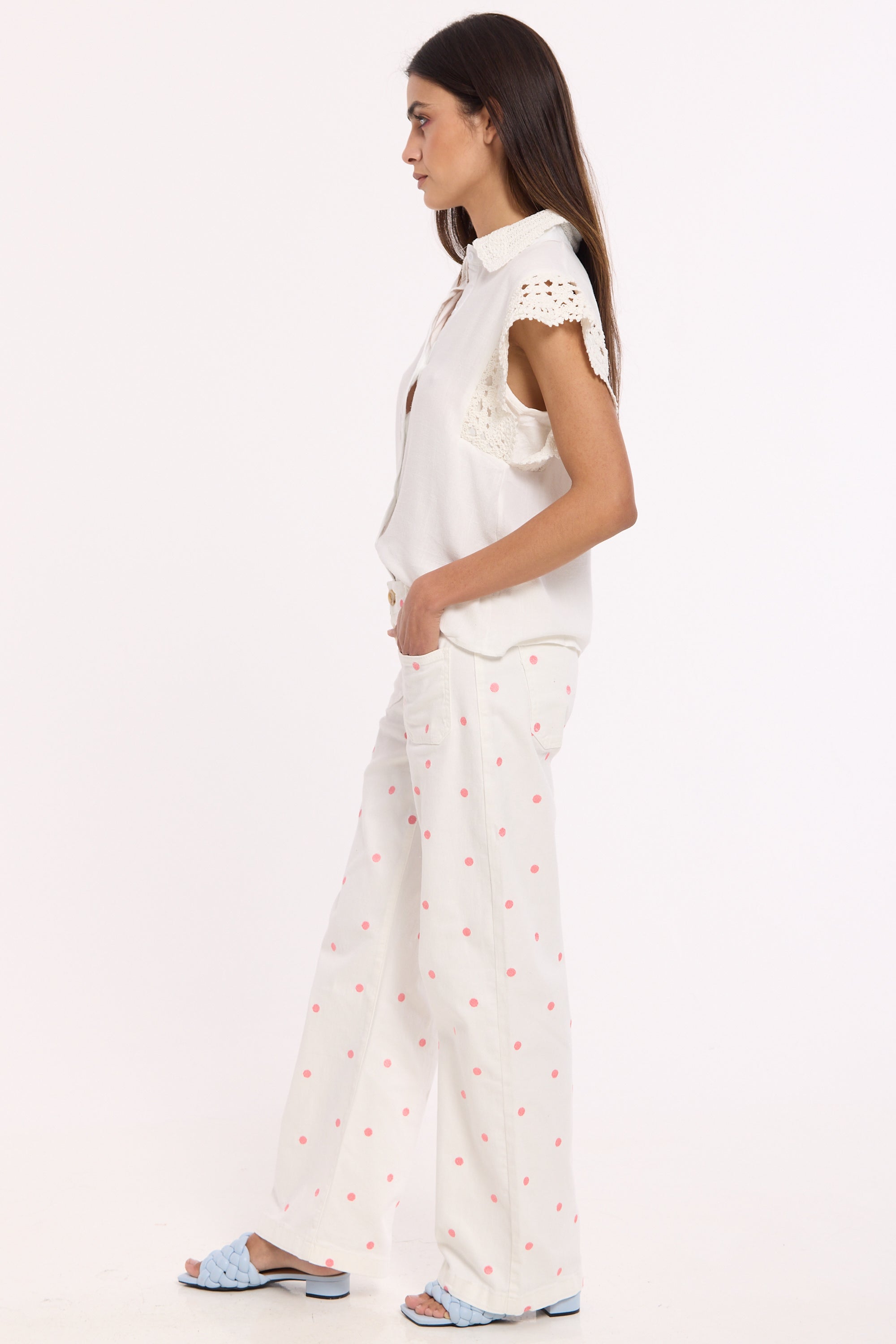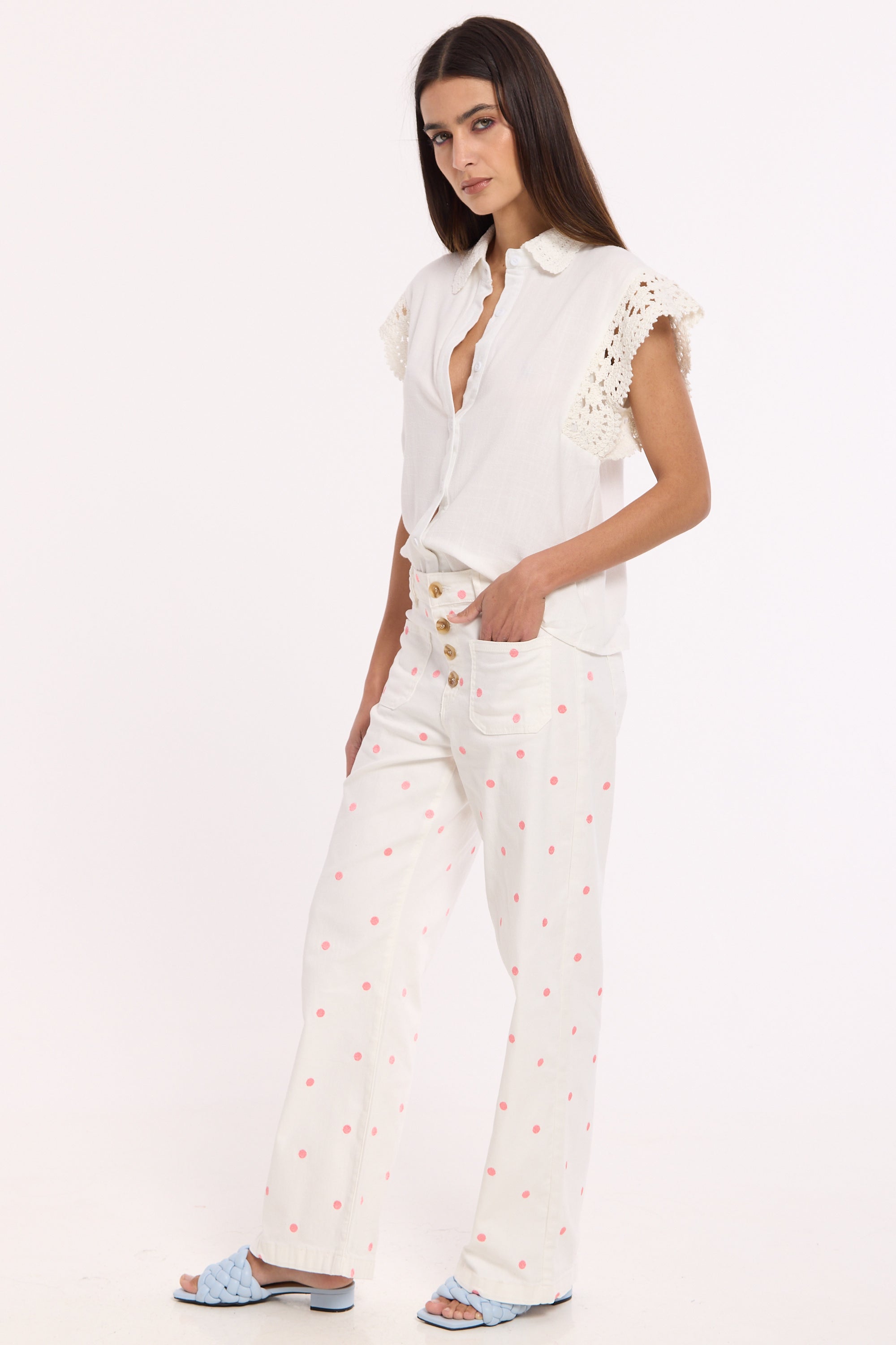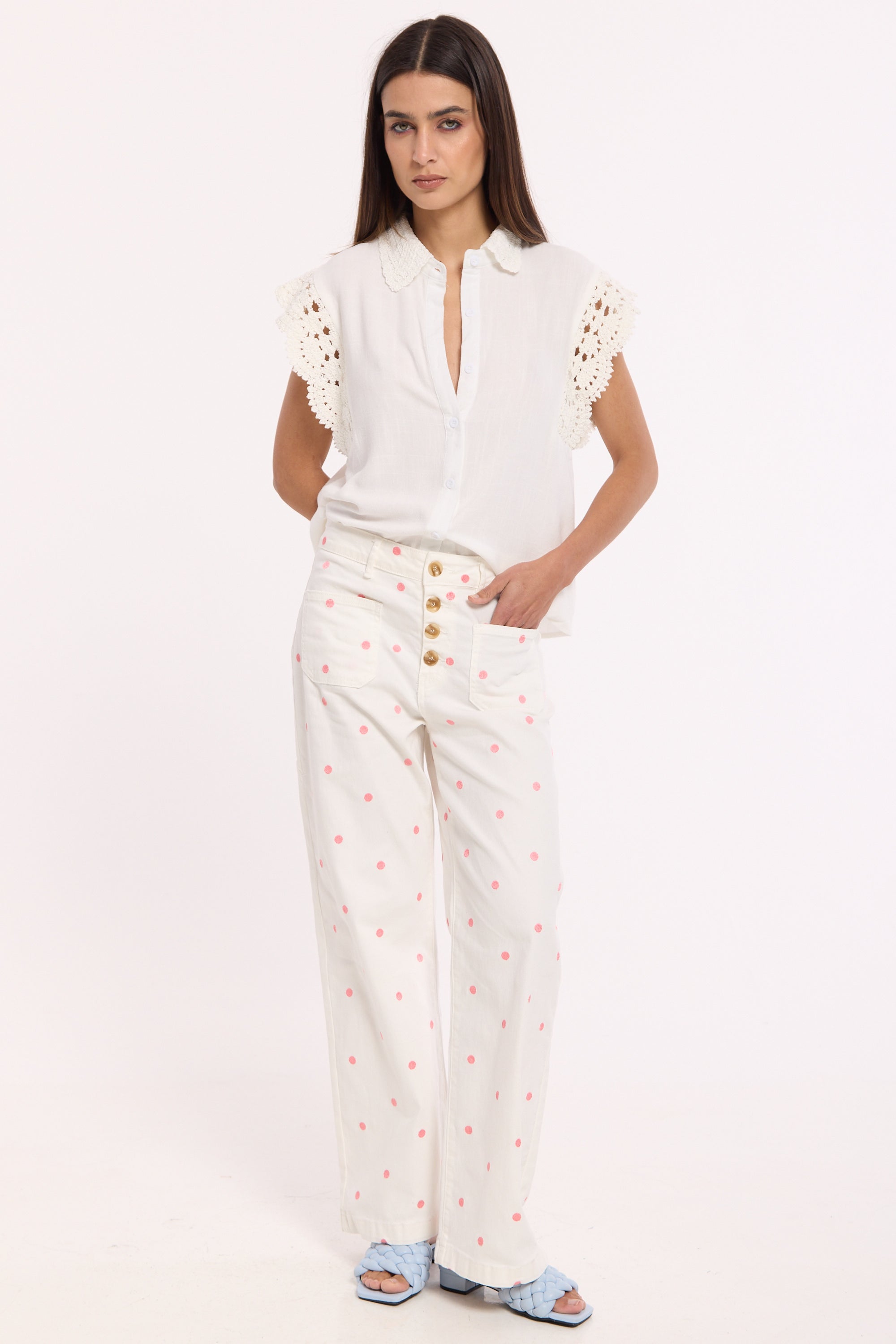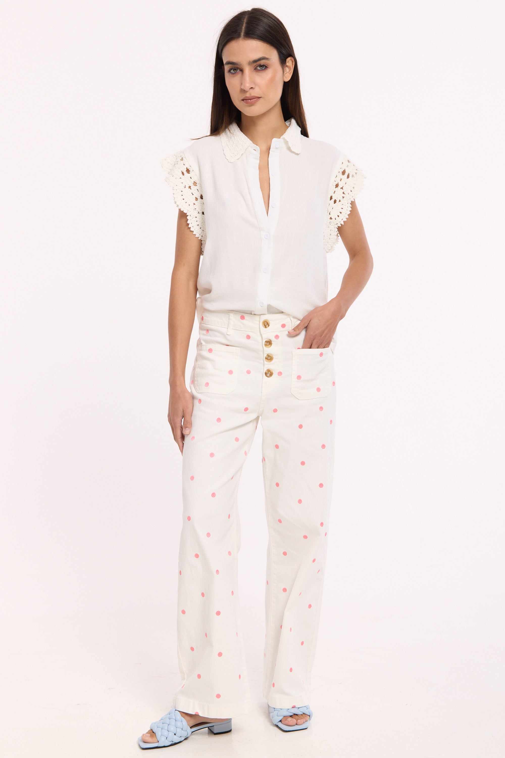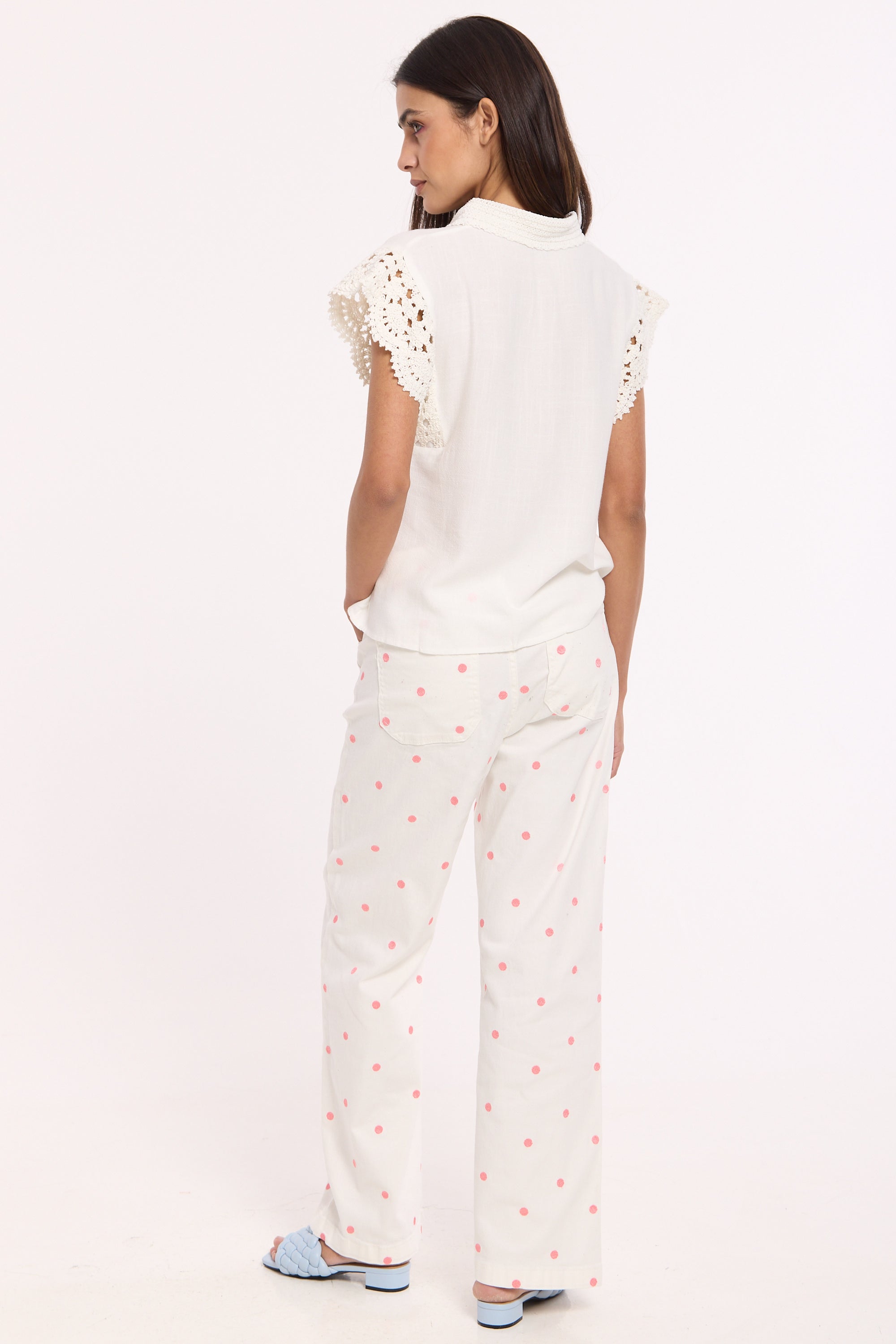 Lace trim detailing on sleeves and collar