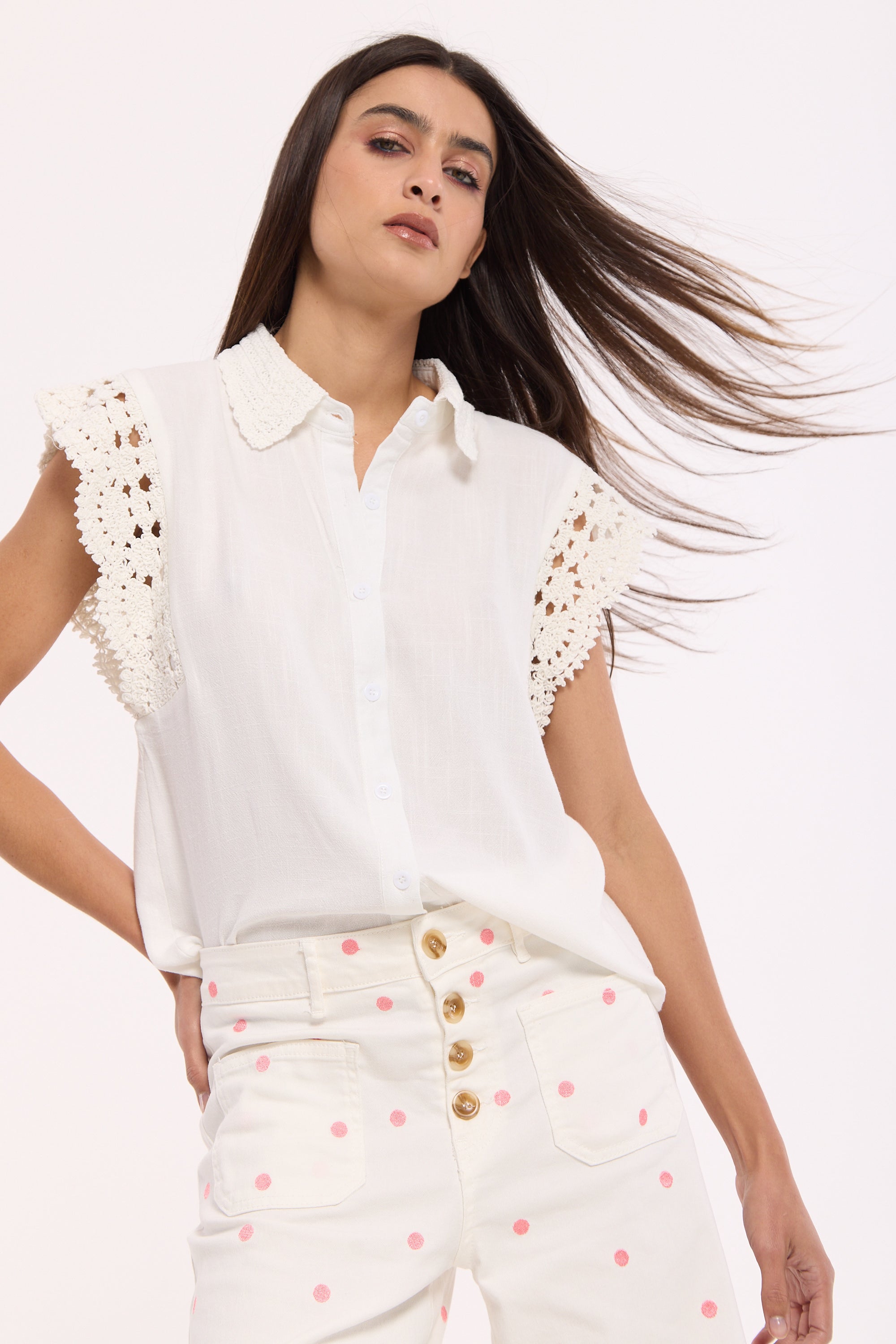 White Lace Trim Sleeveless Shirt
