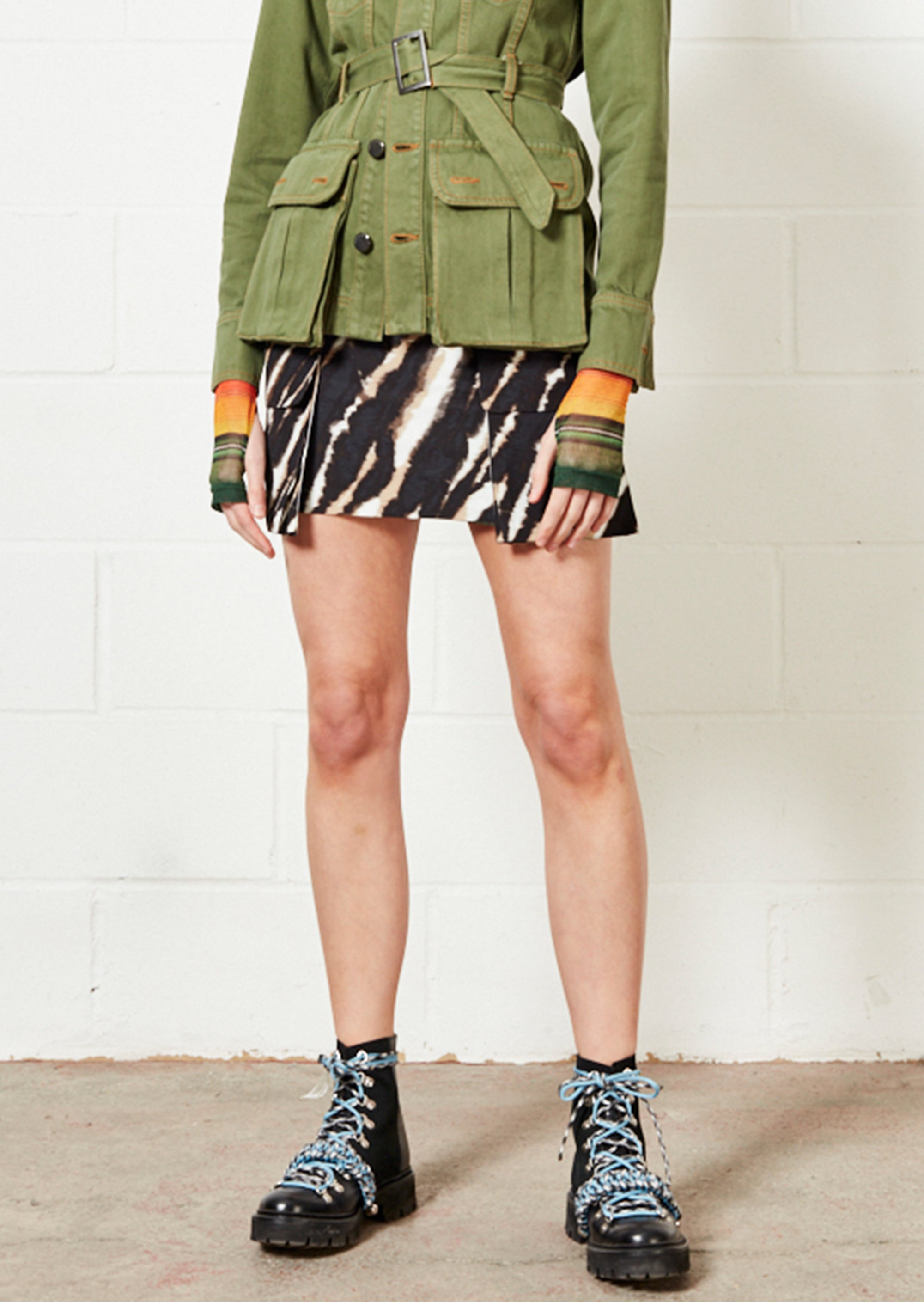 Stride with confidence in the House of Holland tie dye mini skirt. With this zebra print its time to take a walk on the wild side.